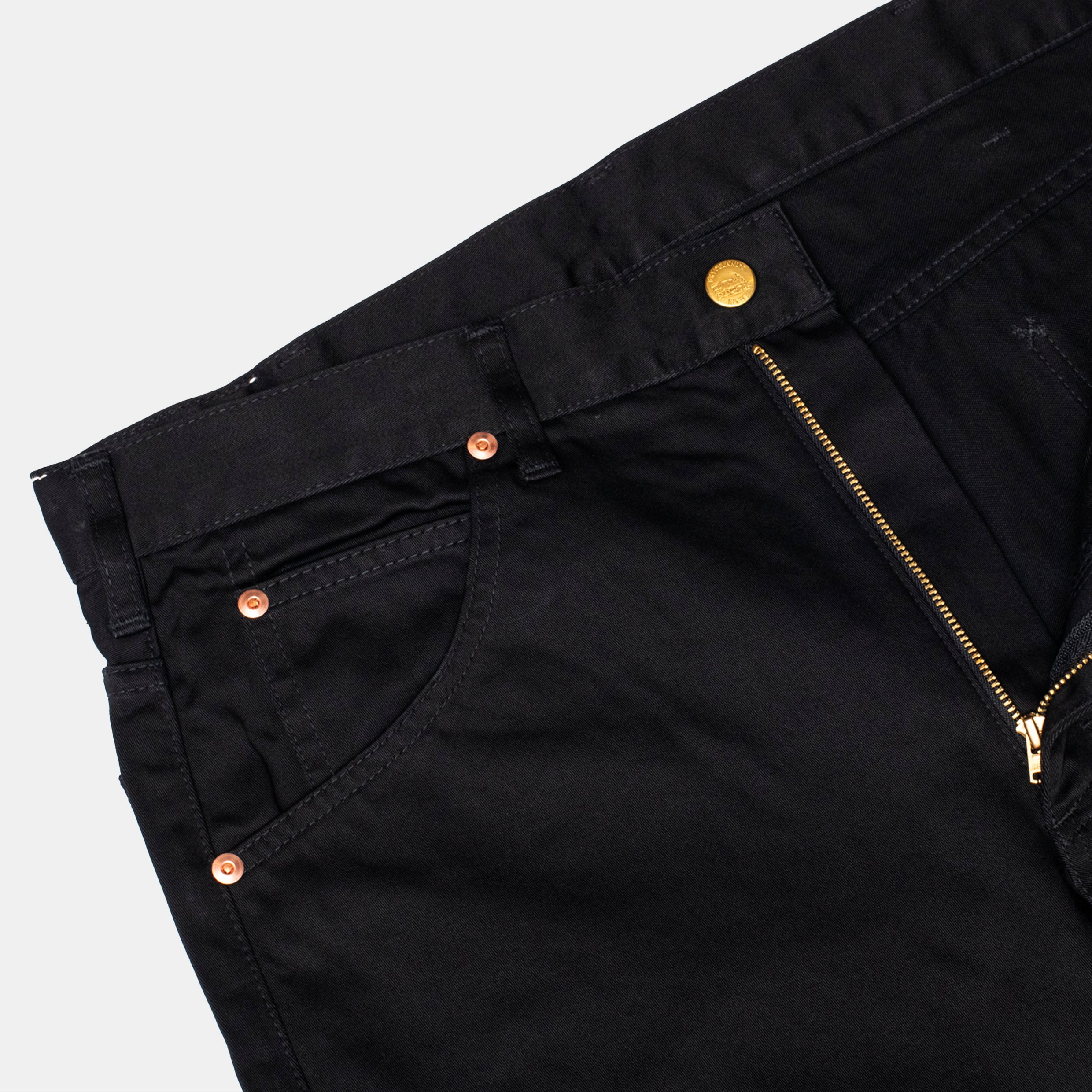 It is our first zip fly model, in keeping with the period they originated. The zip is a cotton tape and brass teeth “Universal” from YKK Japan.