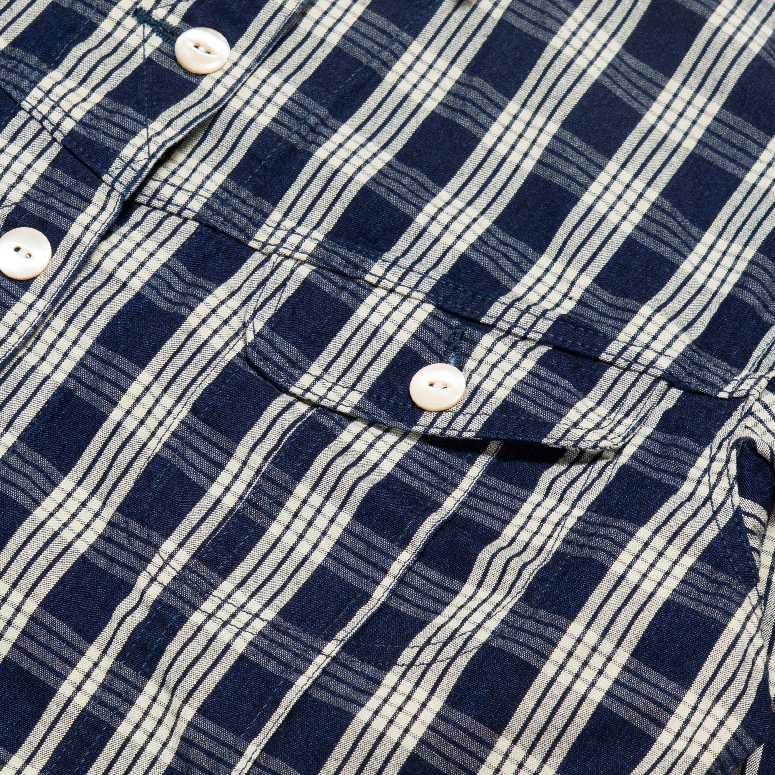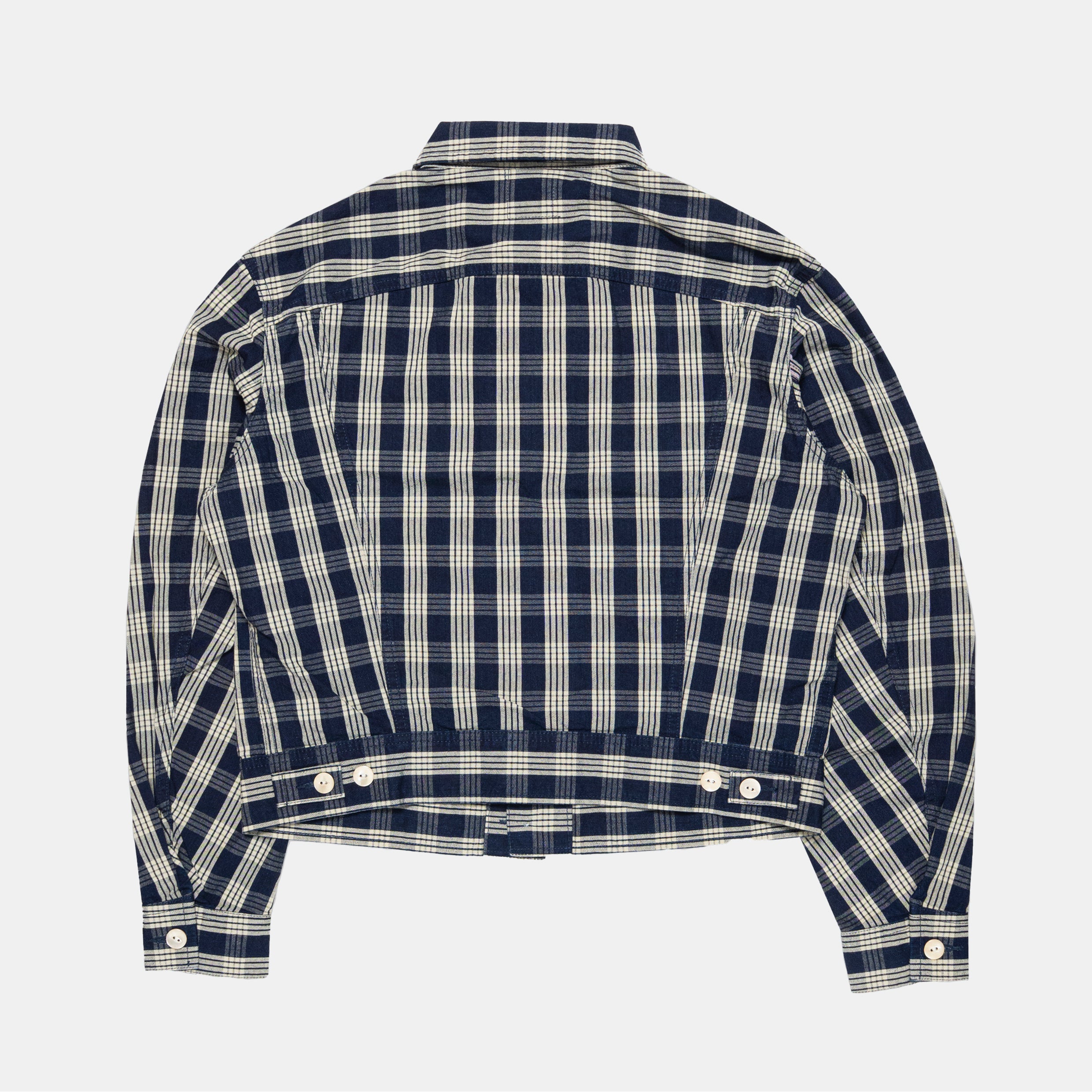Our very popular Cash jacket is being released in a new fabrication – a blue and white check cotton, drawing influence from early mining and western wear. Buttons have been changed to cats eye mother of pearl to make it feel a little more primitive, but also allows it to pair comfortably with tailoring.