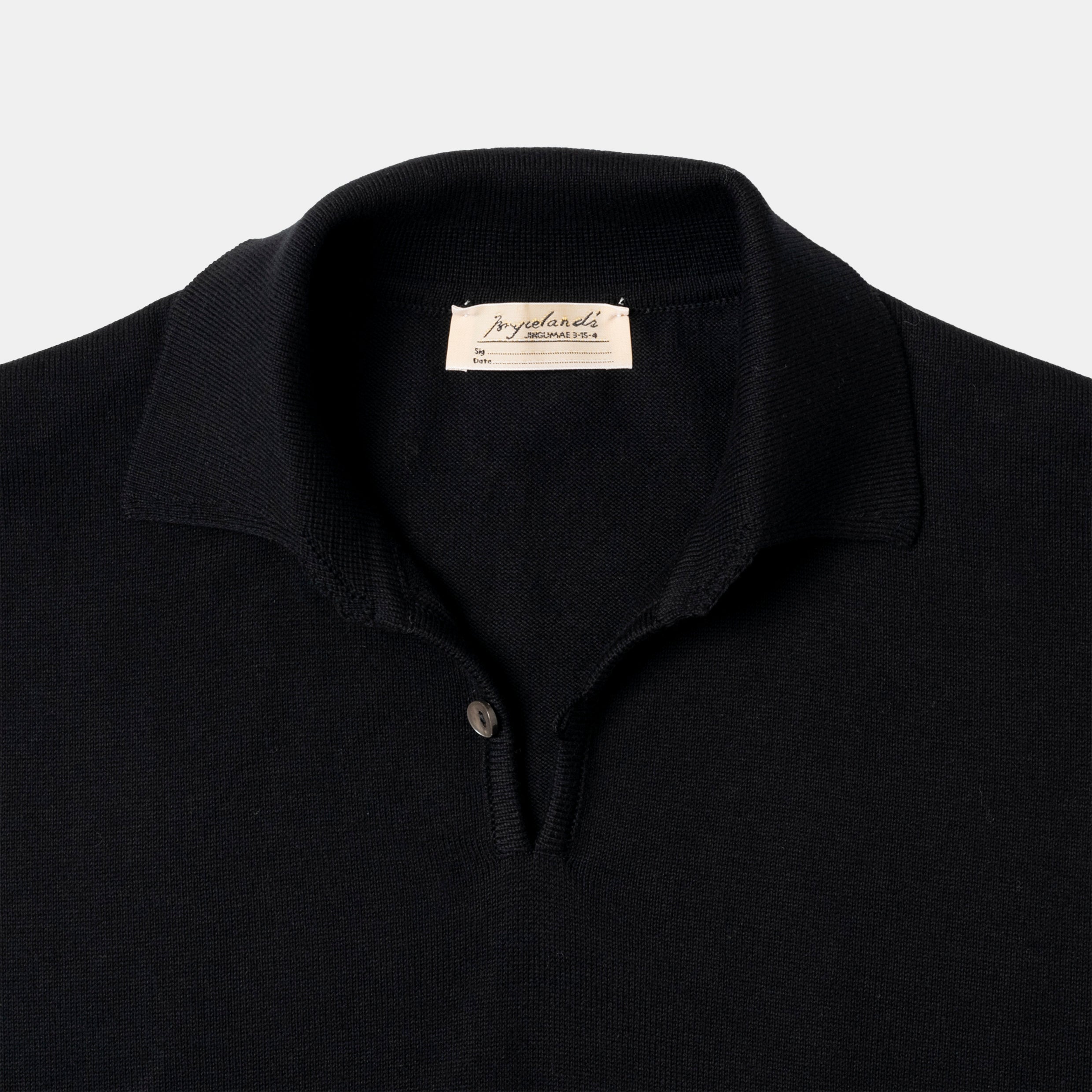 Our Skipper polo, a take on a classic knit polo, is a tennis shirt for cream flannels and white bucks – it’s louche and elegant and intentional. It is short so it can ride on the waistband of our trousers, ribbed at the shorter, mid-bicep sleeve – regardless of how well trained those biceps are, we aren’t trying to mask them or disappear into the wallpaper.