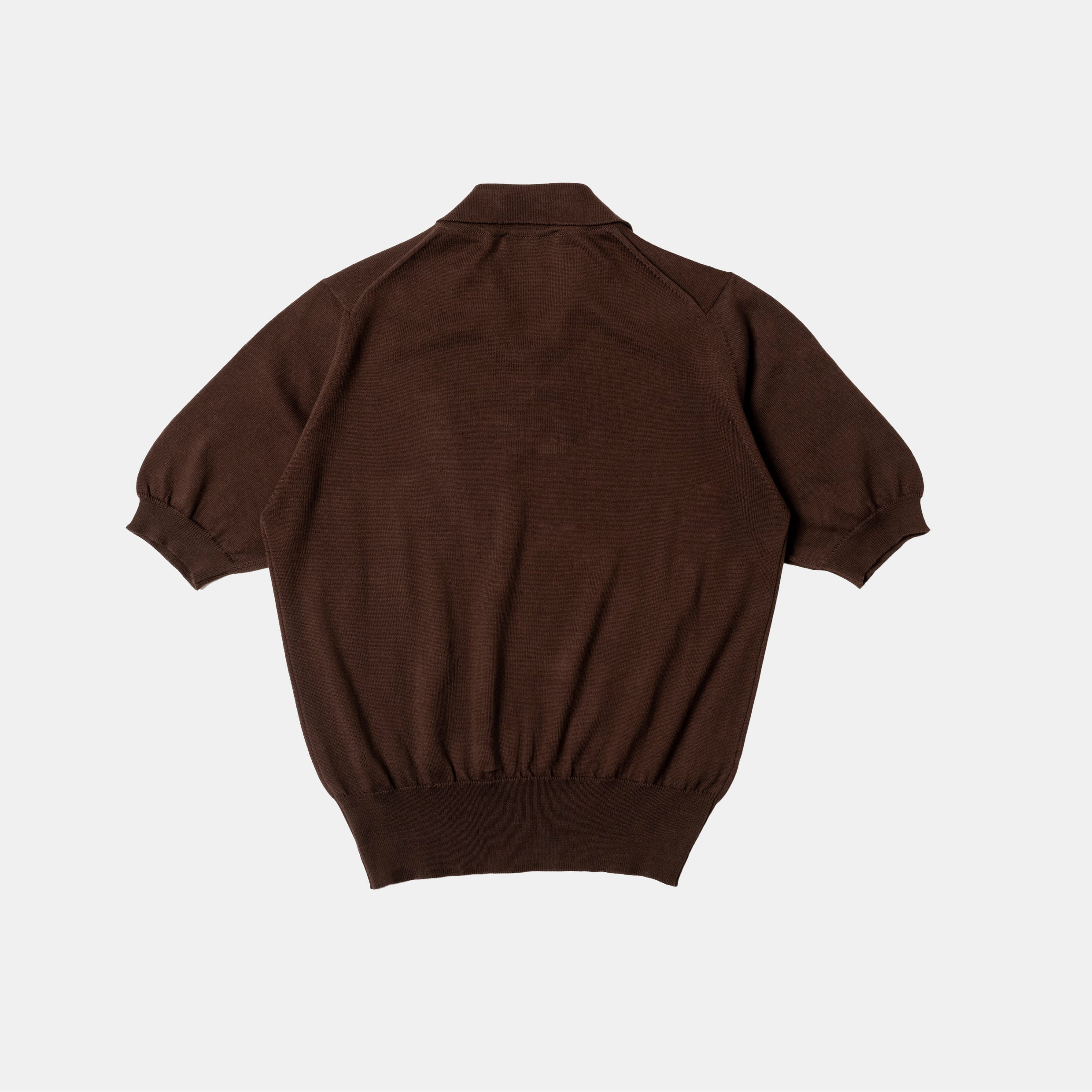 Our Skipper polo, a take on a classic knit polo, is a tennis shirt for cream flannels and white bucks – it’s louche and elegant and intentional. It is short so it can ride on the waistband of our trousers, ribbed at the shorter, mid-bicep sleeve – regardless of how well trained those biceps are, we aren’t trying to mask them or disappear into the wallpaper.
