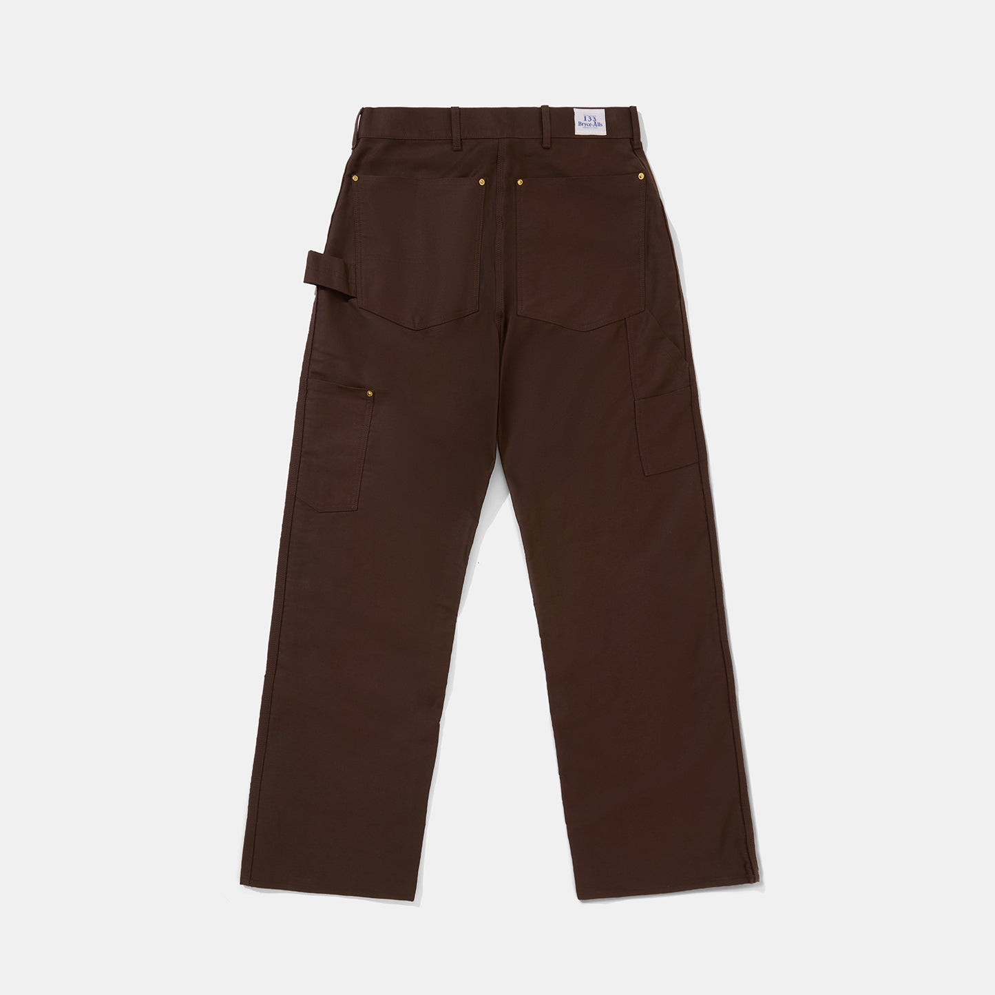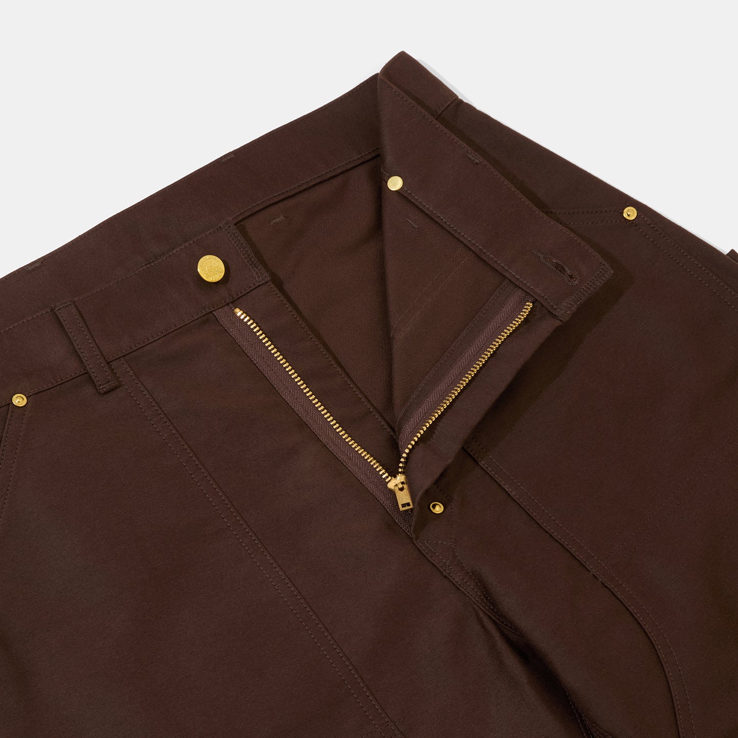 Our pattern, released under our Bryce-Alls collection, we believe is the perfect balance of workwear, fit and fabric. With mid to high rise, the waistband sits formally just above the hip giving shape and proportion before falling into a full leg. The ‘double-knee’ front starts at the waistband, forming the front pockets and finishing at the shin. The defining utility pockets and loops are all in place and finished with brass hardware and zip-fly.