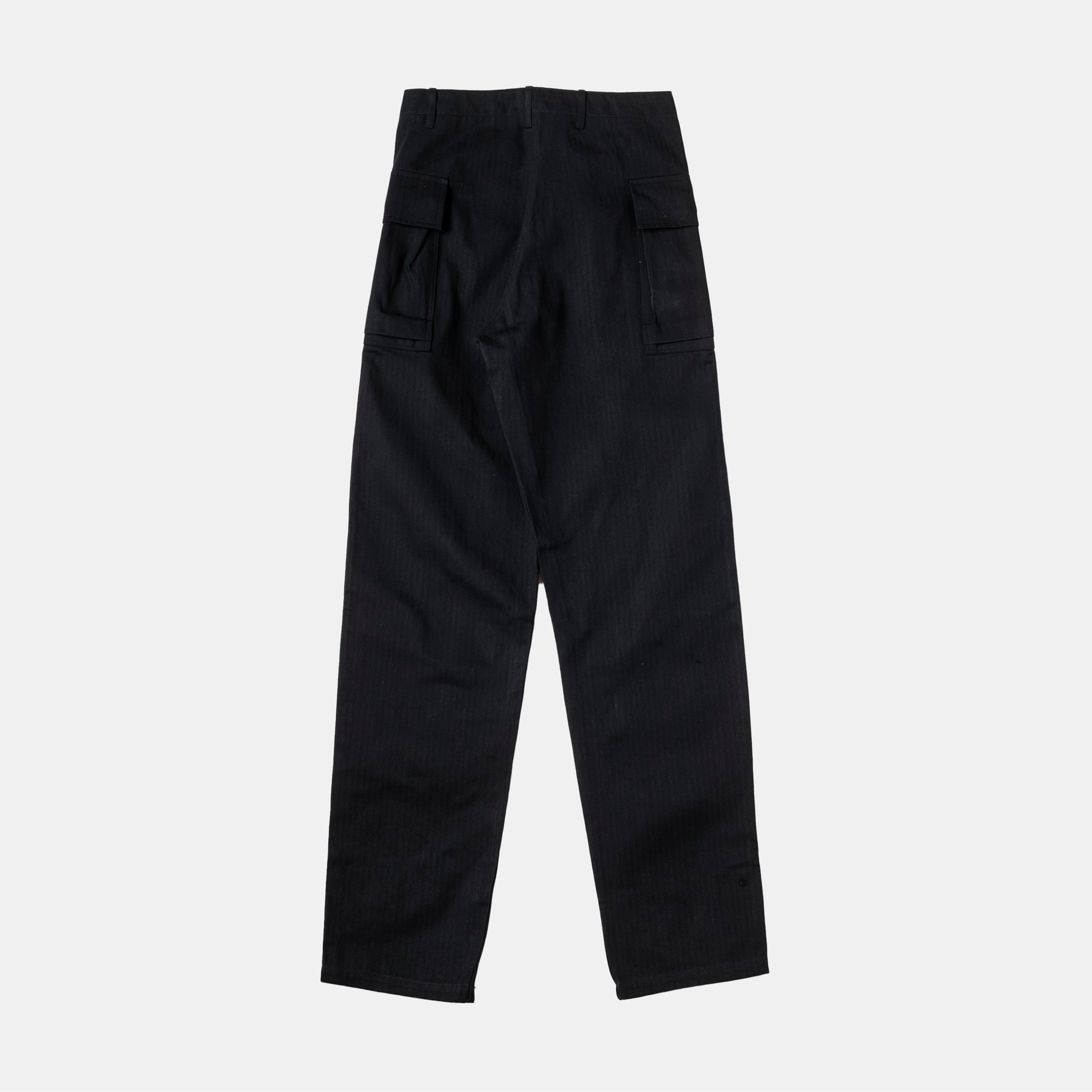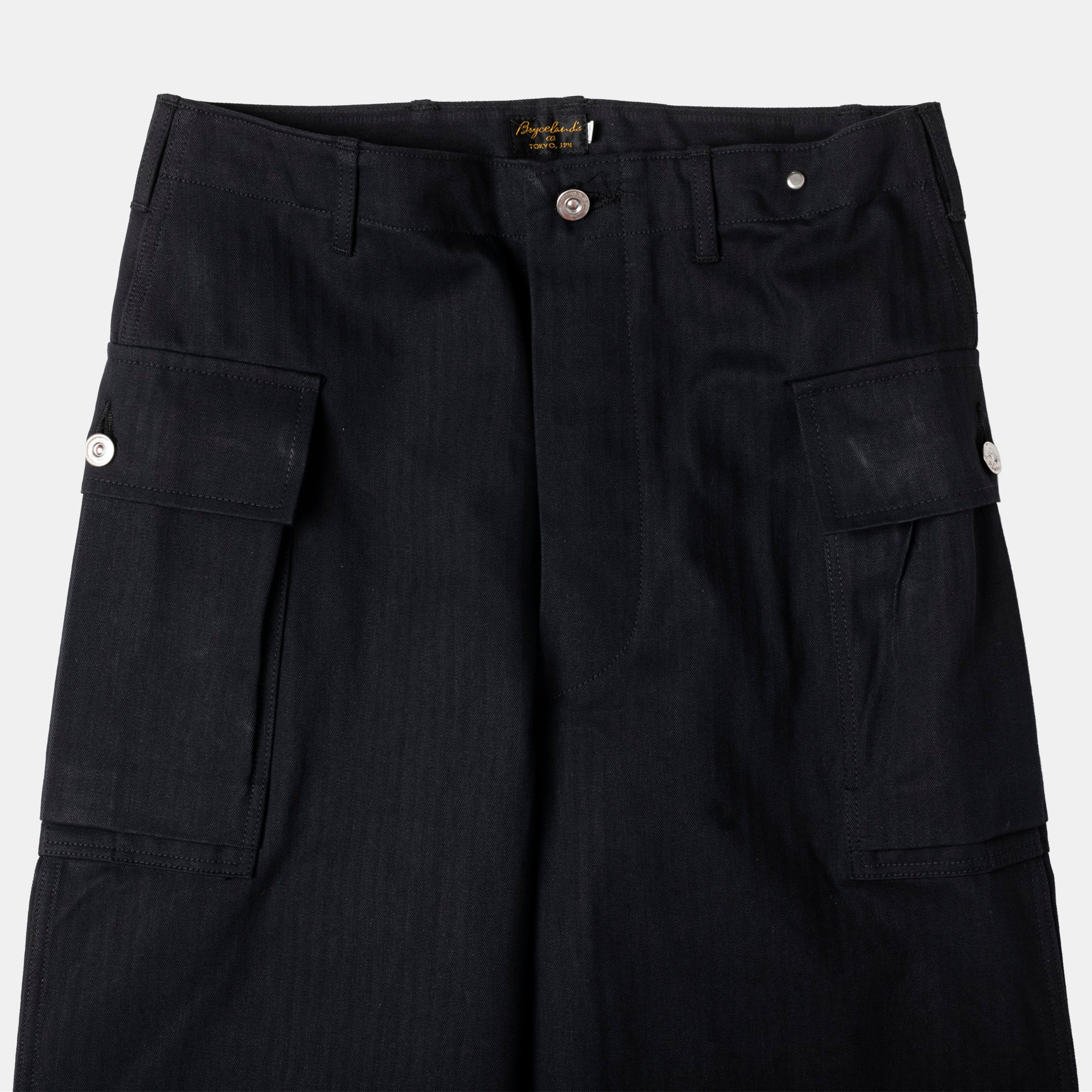 The garments of enlisted men in WWII straddles an unusual paradigm that makes it so appealing to proponents of a classic wardrobe – they were functional garments made to be abused, but cut with the sensibilities of the pre-fashion, pre-mass production world. Trousers like the USMC P-41, P-44 and P-47 and their variants show this. Cut high on the waist without an attached waistband, a full hip and a gentle taper to the leg, they are as reminiscent of a dress trouser in their form, while being a tank of a garment in their make and fabric.